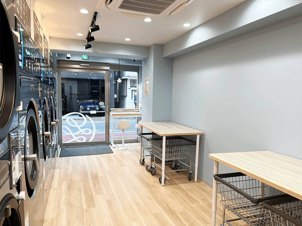 店内は落ち着いた色調でまとめ、ゆったりとした時間を過ごせるように設計。地域の方々にとって身近に頼れる洗濯パートナーを目指します。
